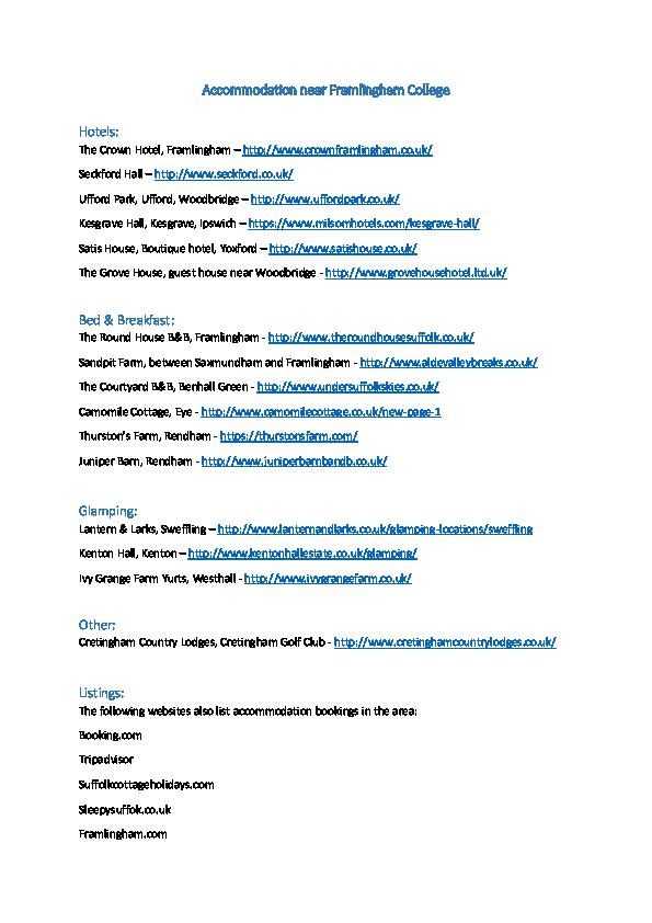 Accommodation near Framlingham College