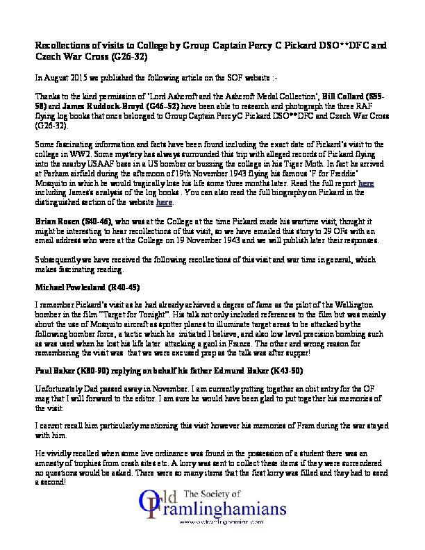 Recollections of Pickard visit on 19 November 1943