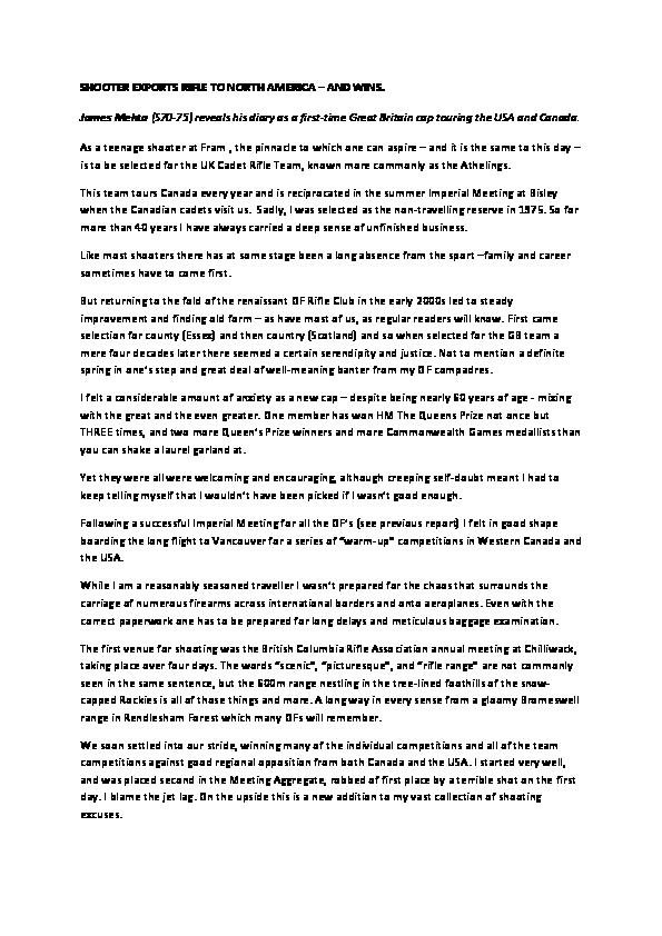 OF Shooter visits Canada and USA with GB Rifle Team