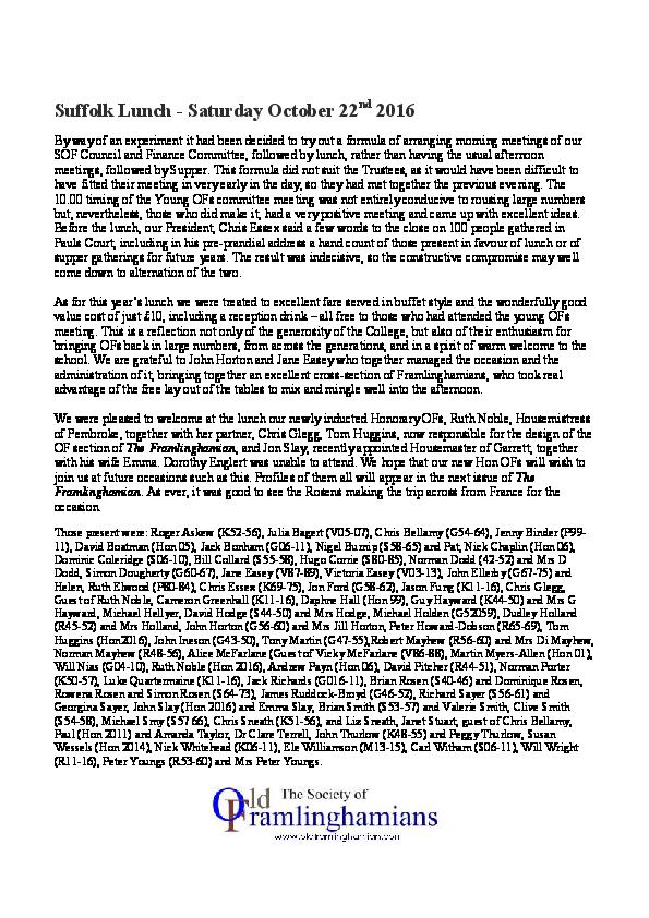 Suffolk Lunch - October 2016