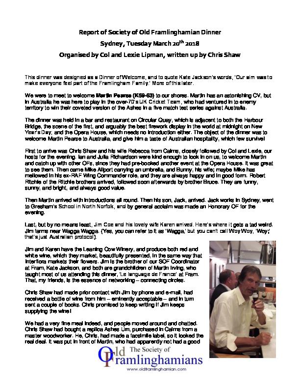 March 2018 Sydney OF reunion