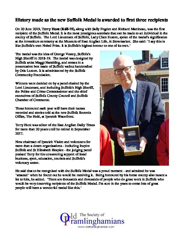Frist Suffolk Medal to Terry Hunt (K68-75)