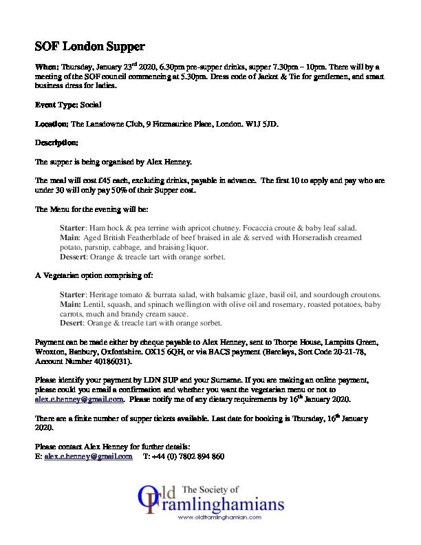 SOF London Supper - 230120