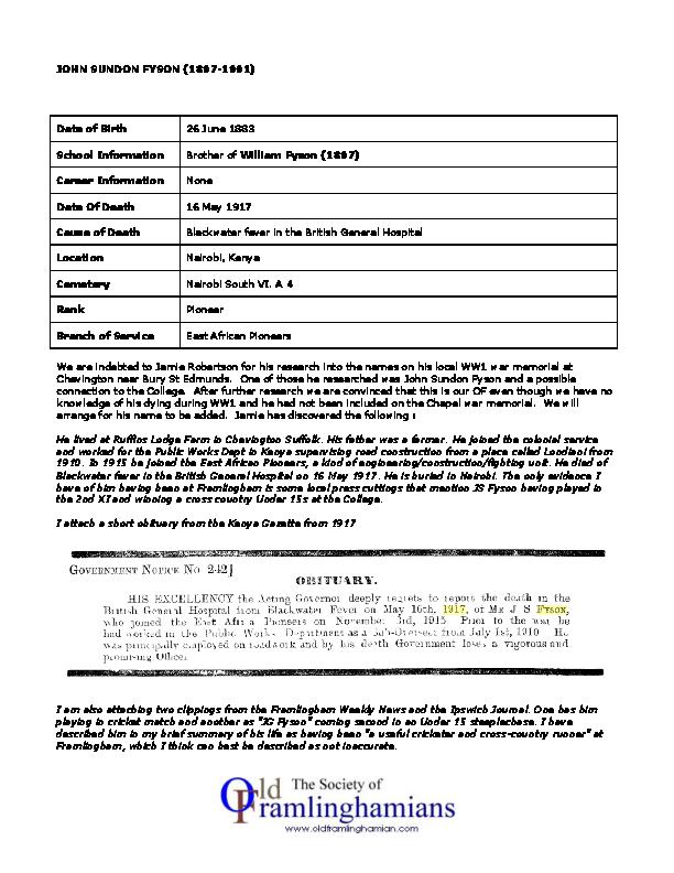 Distinguished Old Framlinghamians